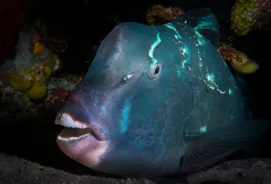 At the top of the food-chain, black tip sharks, white tip sharks and even grey reef sharks cruise the surroundings usually. Other large fishes like Napoleons, bumphead parrotfish and malabar groupers are around as well.